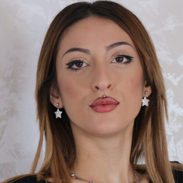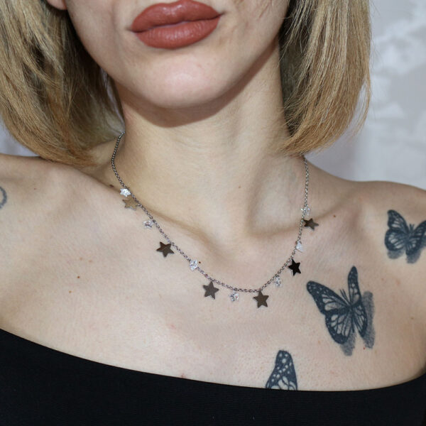 – *Bracciale*: Un design coordinato con piccoli ciondoli a forma di stella, che si snodano con grazia lungo il polso.