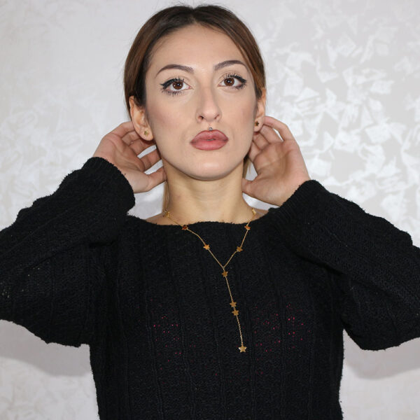 – *Collana*: Una sottile catena dorata con un ciondolo a forma di stella, ideale per aggiungere un tocco brillante al tuo look.