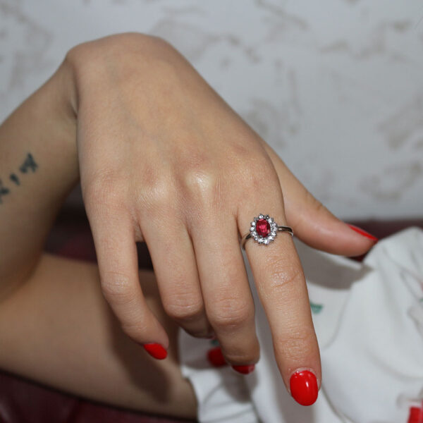 Questo elegante anello in acciaio inossidabile presenta una pietra centrale di colore vibrante, disponibile in rosso, rosa, o trasparente. Ogni pietra è incorniciata da piccoli diamanti o zirconi, aggiungendo un tocco di brillantezza. Perfetto per aggiungere un tocco di colore e stile in qualsiasi outfit.
