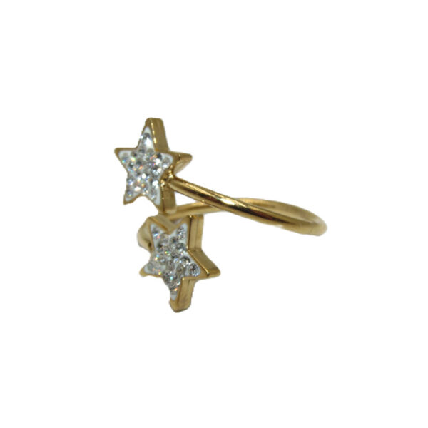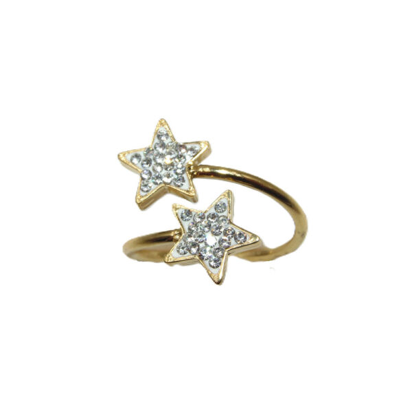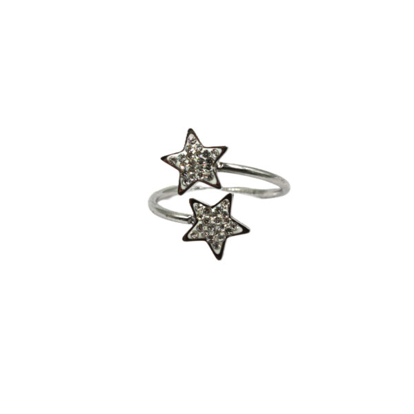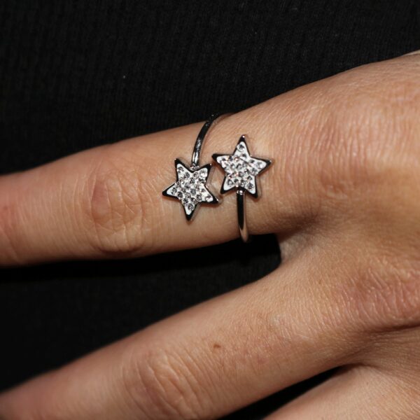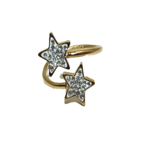 Questo anello è realizzato in acciaio inossidabile 316L, un materiale resistente, ipoallergenico e lucido. L’anello ha due decorazioni a forma di stella, impreziosite da piccoli cristalli che brillano alla luce. Il design è semplice ma elegante, adatto a ogni occasione. L’anello è regolabile in diverse misure in base alla circonferenza del dito.