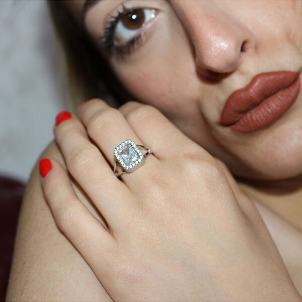 Questo elegante anello in acciaio inossidabile presenta un design moderno e raffinato. La pietra centrale di forma rettangolare, circondata da piccole pietre brillanti, aggiunge un tocco di brillantezza e unicità. L’anello è perfetto per chi cerca un gioiello distintivo e duraturo, ideale per ogni occasione, sia formale che informale.