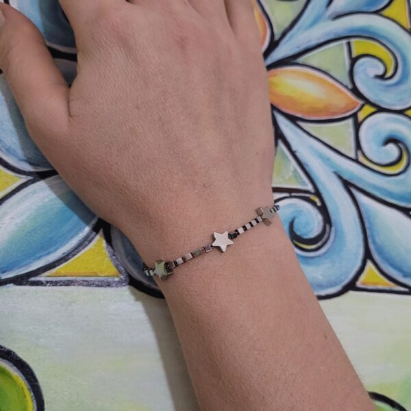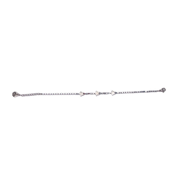 Questo bracciale in acciaio inossidabile 316L è un gioiello di qualità superiore, perfetto per un look moderno ed elegante. L’acciaio 316L è noto per la sua resistenza alla corrosione, rendendo questo bracciale una scelta eccellente per la durata e la longevità. Il bracciale è composto da piccoli anelli quadrati collegati tra loro, che creano una trama geometrica e raffinata. Tre decorazioni a forma di stella, lucide e brillanti, sono distribuite lungo il bracciale, aggiungendo un tocco di luce e fantasia. Questo bracciale è un accessorio versatile e originale, che si adatta a ogni occasione e stile.