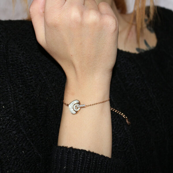 Se cerchi un bracciale elegante e raffinato, questo è il modello che fa per te. Questo bracciale è realizzato in acciaio inossidabile 316L, noto per la sua resistenza alla corrosione e durata. Il pezzo centrale è un charm laminato bronzo, che aggiunge un tocco di classe e stile. I dettagli finemente lavorati e l’incastonatura di pietre scintillanti rendono questo bracciale un accessorio distintivo.