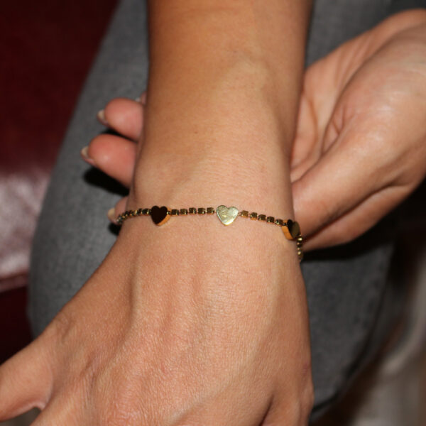Questo bracciale in acciaio inossidabile laminato oro è un accessorio elegante e raffinato, perfetto per aggiungere un tocco di classe al tuo look. Il bracciale è composto da una catena di piccoli anelli rettangolari, intervallati da delicati cuori dorati che riflettono la luce. Il design è semplice ma sofisticato, adatto sia per un abbigliamento casual che formale. Il bracciale è realizzato in acciaio inossidabile di alta qualità, resistente alla corrosione e all’ossidazione, e laminato con uno strato di oro lucido che ne esalta il colore. Il bracciale è dotato di una chiusura a moschettone, facile da aprire e chiudere, e di una catenella regolabile per adattarsi a diverse misure di polso. Questo bracciale è un regalo ideale per te o per una persona speciale, in quanto simboleggia l’amore e l’amicizia. Acquistalo ora e riceverai una confezione regalo gratuita!