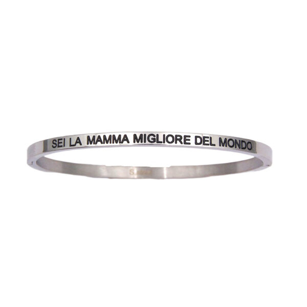 Questo bracciale rigido in acciaio è il regalo perfetto per la mamma in occasione della festa della mamma, del suo compleanno o di qualsiasi altra occasione speciale. Il bracciale è inciso con la frase “SEI LA MAMMA MIGLIORE DEL MONDO”, che esprime tutto l’amore e la gratitudine che provi per lei. Il bracciale è realizzato in acciaio inossidabile di alta qualità, resistente e ipoallergenico. Ha una finitura lucida che riflette delicatamente la luce, creando un effetto elegante e raffinato. Il bracciale ha una forma rigida che si adatta facilmente al polso, senza bisogno di chiusure o catenine. Il bracciale è disponibile in diverse misure, per adattarsi a ogni tipo di polso. Il bracciale è confezionato in una scatola regalo, pronta per essere donata alla mamma.