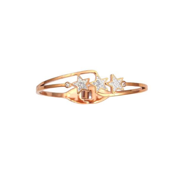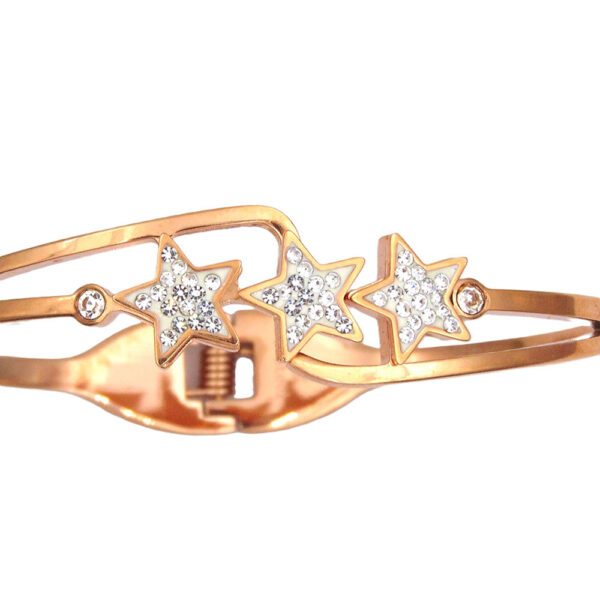 Il bracciale rigido in acciaio laminato bronzo è un pezzo di gioielleria elegante e sofisticato. È adornato con stelle scintillanti incastonate che aggiungono un tocco di lusso e fascino. La finitura in bronzo conferisce al bracciale un aspetto vintage, rendendolo una scelta perfetta per chi ama i gioielli con un tocco di antichità ma moderno allo stesso tempo. Il bracciale è realizzato in acciaio di alta qualità, resistente e ipoallergenico. Si adatta perfettamente al polso, evidenziando la sua struttura rigida e il suo design raffinato. Il bracciale è ideale per completare qualsiasi outfit, sia casual che formale, e per regalare un’emozione speciale a chi lo indossa o lo riceve.