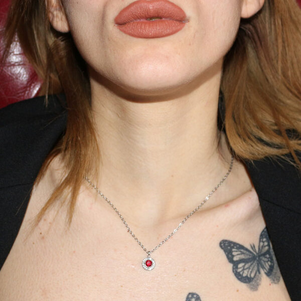 Se cerchi un gioiello elegante e sofisticato, la collana Elisa è quello che fa per te. Questa collana è realizzata in acciaio di alta qualità 316L, anallergico e inossidabile, che garantisce comfort e durata nel tempo. Il ciondolo rotondo è impreziosito da una pietra rossa centrale, circondata da strass scintillanti che riflettono la luce. La collana Elisa fa parte della collezione Classic, una linea di gioielli dal design semplice ma raffinato, adatta a ogni occasione. Aggiungi un tocco di classe al tuo look con la collana Elisa, disponibile sul nostro.