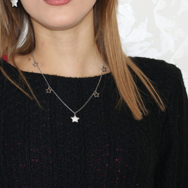 Questa collana in acciaio inossidabile è un gioiello elegante e raffinato, ideale per essere presentato su un sito ecommerce. Con i suoi ciondoli a forma di stella, è un accessorio che combina stile moderno e classico. Ogni ciondolo è finemente lavorato, aggiungendo un tocco di eleganza al pezzo. La catenina è sottile e delicata, ma resistente, garantendo durata e mantenendo una sensazione di leggerezza per un’usura confortevole. Il materiale in acciaio inossidabile conferisce alla collana una finitura lucida che è sia attraente che resistente all’ossidazione. La collana è disponibile in diverse lunghezze e colori, per adattarsi ai gusti e allo stile di ogni cliente. La collana in acciaio inossidabile con ciondoli a forma di stella è un regalo perfetto per te o per una persona speciale, che saprà apprezzare la sua bellezza e la sua semplicità.