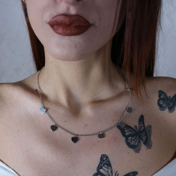 Questa raffinata collana è l’emblema della sofisticatezza. Realizzata in acciaio inossidabile anallergico, è decorata con quattro ciondoli a cuore, ognuno con una finitura unica che aggiunge varietà e interesse visivo. La catena, composta da piccoli anelli collegati, è robusta ma al tempo stesso delicata. Il design elegante e femminile la rende perfetta per ogni occasione, sia che si tratti di un regalo speciale o di un complemento per il tuo outfit quotidiano.