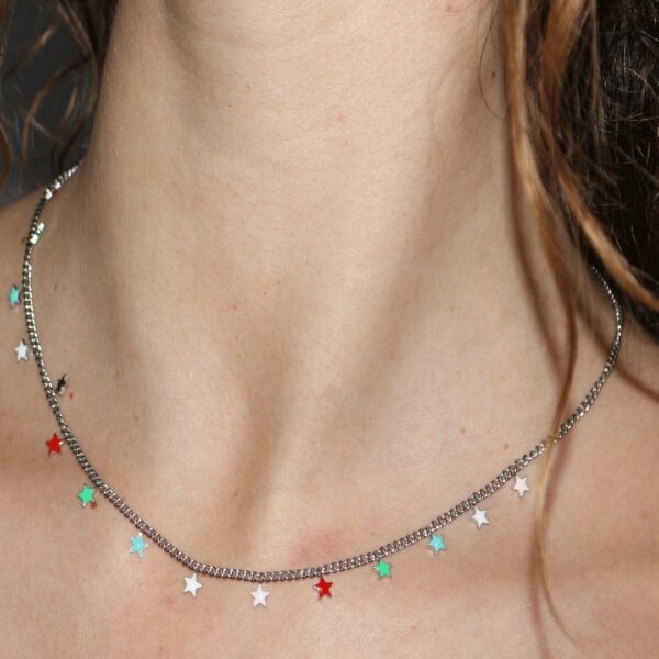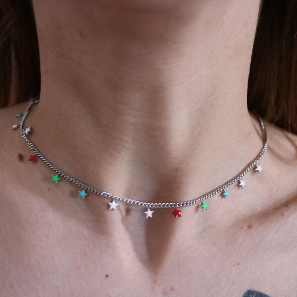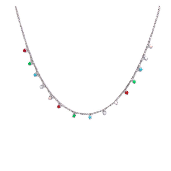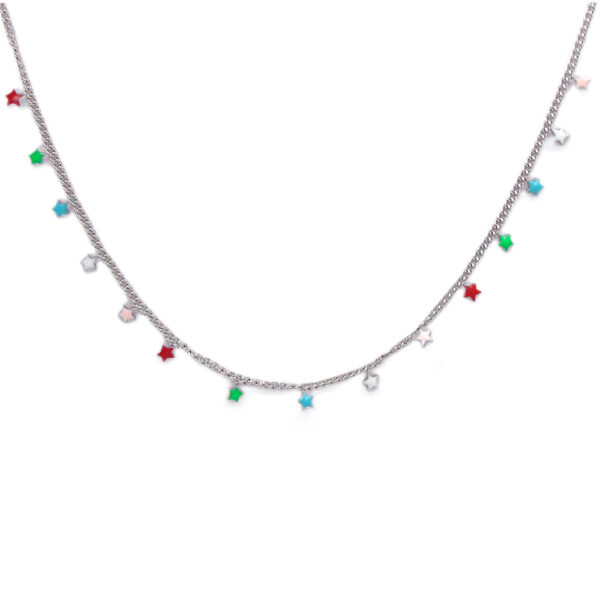 Ami il cielo stellato, questa collana della collezione Cielo è fatta per te. Realizzata in acciaio inossidabile 316L, questa collana è anallergica e inossidabile, quindi puoi portarla sempre con te senza preoccupazioni. Le stelline smaltate in vari colori sono il dettaglio che rende questa collana unica e originale, perfetta per dare un tocco di allegria al tuo look. Questa collana è ideale da regalare o da regalarsi, per sentirsi sempre vicini al cielo.