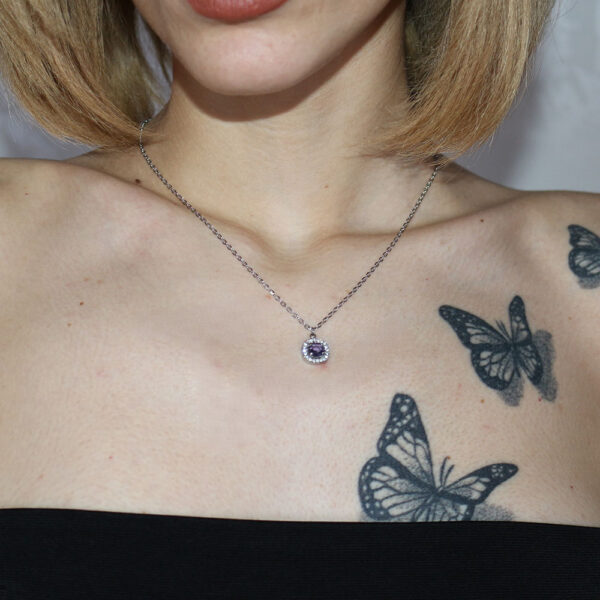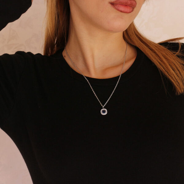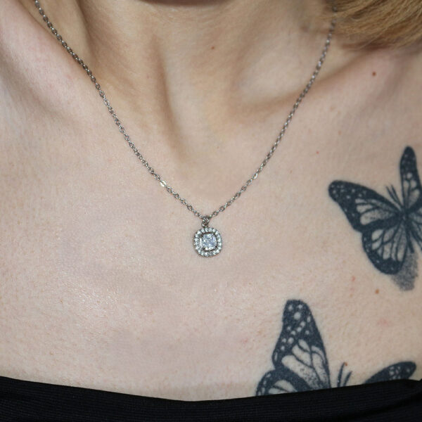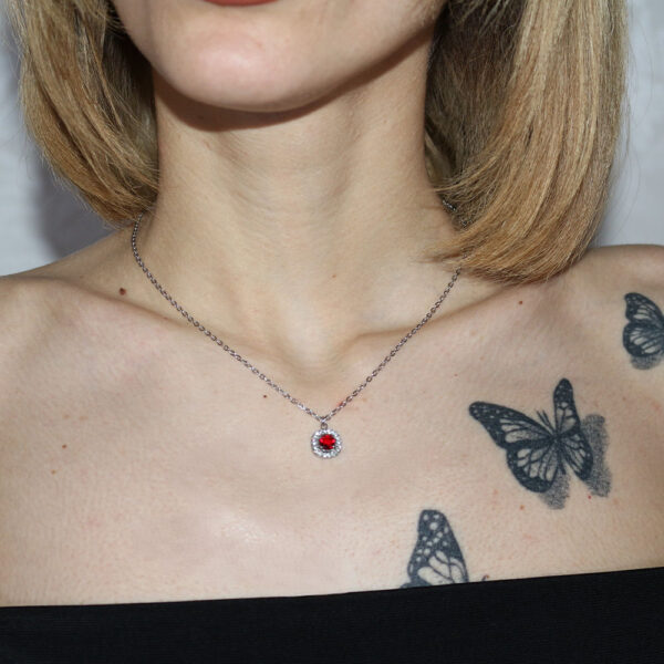 Questa elegante collana in acciaio inossidabile presenta una catena sottile e delicata, perfetta per aggiungere un tocco di raffinatezza al tuo look. Il ciondolo Quadrato, caratterizzato da una pietra rossa al centro, è circondato da piccoli cristalli trasparenti che aggiungono brillantezza e lucentezza. Ideale sia per occasioni formali che informali, questa collana è un accessorio versatile che può essere abbinato a una vasta gamma di outfit, garantendo sempre un aspetto chic e sofisticato.
