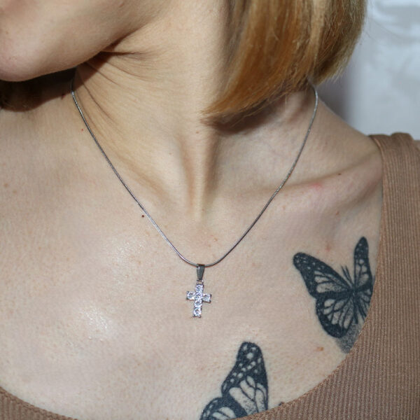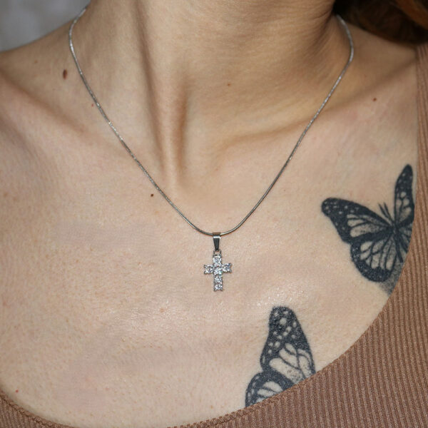 Questa elegante collana in acciaio inossidabile è un accessorio sofisticato e alla moda, ideale per completare il tuo look quotidiano o per eventi speciali. Il ciondolo a forma di croce è arricchito da piccoli zirconi scintillanti, che aggiungono un tocco di brillantezza e raffinatezza. La catena sottile e delicata, abbinata alla croce, crea un equilibrio perfetto tra eleganza e semplicità. La chiusura sicura garantisce una vestibilità comoda e stabile, permettendoti di indossarla tutto il giorno senza preoccupazioni. Perfetta come regalo per te stessa o per una persona cara, questa collana è un must-have nella tua collezione di gioielli.