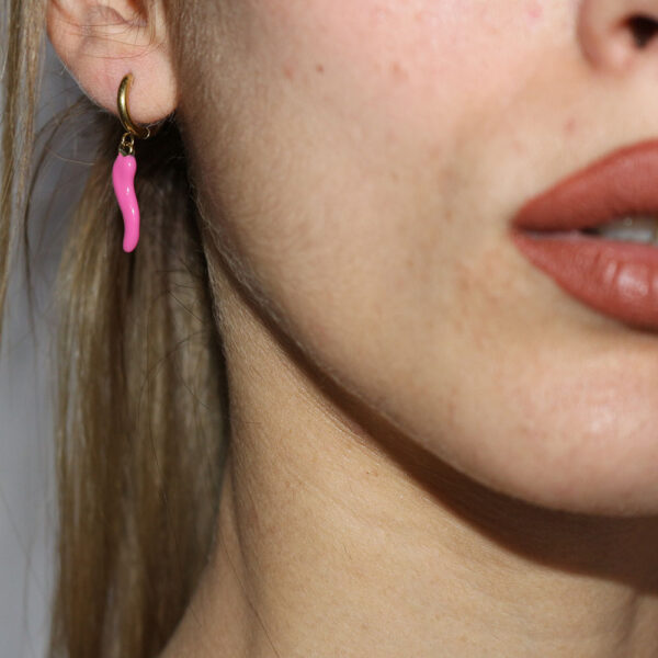 Un vero e proprio talismano di stile! Realizzati con cura in acciaio inossidabile 316L, questi orecchini non solo garantiscono un’eleganza senza tempo, ma offrono anche la massima sicurezza per chi ha la pelle sensibile grazie alla loro natura anallergica. Il design distintivo presenta un corno smaltato in rosa, sospeso da un gancio laminato in oro, che aggiunge un tocco di colore e personalità.
