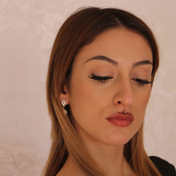 Aggiungi un tocco di eleganza senza tempo al tuo look con questi splendidi orecchini pendenti in acciaio inossidabile. La parte superiore dell’orecchino è decorata con due file di piccoli cristalli brillanti, disposti in modo parallelo. Da questa parte superiore pende una perla bianca, che aggiunge un tocco di raffinatezza e classicità al design complessivo. Perfetti per occasioni formali o eventi speciali, questi orecchini combinano il fascino dei cristalli scintillanti con la delicatezza della perla, creando un accessorio ideale per completare un look sofisticato. Indossali con un abito elegante o un outfit da sera per catturare l’attenzione e far risplendere il tuo stile