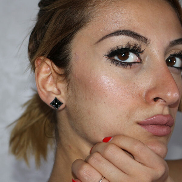 Orecchini in acciaio inossidabile di un design elegante e moderno con materiali di alta qualità, rendendoli un accessorio perfetto per ogni occasione. La forma quadrata degli orecchini offre un aspetto contemporaneo e sofisticato, mentre il motivo centrale a forma di fiore aggiunge un tocco distintivo e artistico. Il contrasto tra la lucentezza dell’acciaio inossidabile e il motivo nero crea un equilibrio visivo raffinato, ideale per esaltare sia un look casual che un outfit più formale. La finitura lucida del metallo garantisce brillantezza e durabilità nel tempo, mentre il motivo a fiore nero è lavorato con precisione, evidenziando i dettagli intricati del design.