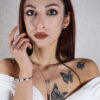 Questa elegante collana in acciaio inossidabile anallergico è impreziosita da un raffinato ciondolo a forma di farfalla, sospeso su una catena delicata ma resistente, perfetta per un tocco di grazia quotidiana. L’anello abbinato, anch’esso in acciaio inossidabile anallergico, si distingue per il suo design semplice ed elegante, che lo rende un accessorio versatile e ideale per completare ogni look. Entrambi i gioielli sono perfetti per chi cerca stile, durabilità e materiali adatti alle pelli sensibili.