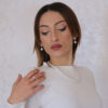 L’anello completa la parure con un design minimalista ma chic, valorizzato da una singola perla centrale che cattura l’attenzione.