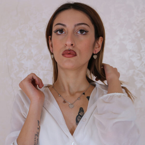 Questa splendida parure unisce design sofisticato, materiali di alta qualità e versatilità, rendendola la scelta perfetta per completare qualsiasi look. Composta da una collana e da orecchini coordinati, questa parure è realizzata in acciaio inossidabile anallergico, offrendo non solo lucentezza e resistenza, ma anche comfort per chi ha la pelle sensibile. La collana presenta una catena fine e leggera arricchita da eleganti charm, tra cui un pendente centrale a forma di cuore, simbolo di romanticismo e femminilità. La lunghezza regolabile consente di adattarla a qualsiasi scollatura, rendendola perfetta per essere indossata in ogni occasione, sia con look casual che con abiti da sera. La sua brillantezza naturale illuminerà il décolleté con un tocco di classe. Gli orecchini coordinati completano il set con un design minimalista ma elegante. Anche loro decorati con un cuore delicato, sono leggeri e comodi da indossare tutto il giorno. La loro forma semplice si abbina facilmente a qualsiasi stile, incorniciando il viso con discreta raffinatezza e luminosità.