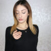 La collana ha un design sofisticato con una catena sottile che sostiene un ciondolo rotondo, impreziosito da una pietra brillante centrale circondata da delicati cristalli. Un gioiello che cattura la luce e aggiunge eleganza a qualsiasi look.