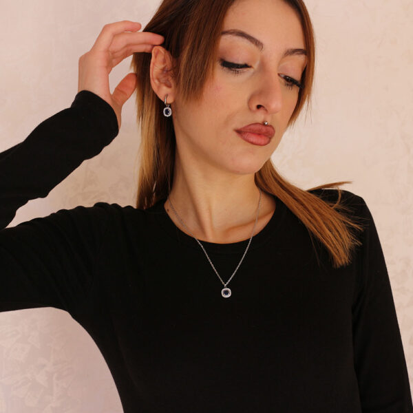 Gli orecchini sono coordinati alla collana, con pietre brillanti e dettagli che richiamano il design del ciondolo, questi orecchini sono perfetti per un abbinamento armonioso e chic. Realizzati in acciaio inossidabile anallergico di alta qualità, garantiscono durabilità e comfort, ideali anche per pelli sensibili. Questa parure rappresenta l’accessorio perfetto per esaltare la tua bellezza, sia quotidiana che straordinaria.