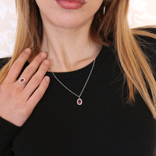 Scegli stile e qualità con questa elegante parure composta da collana e anello, progettata per esaltare la tua bellezza ogni giorno. La collana dal design sofisticato con un ciondolo rotondo ornato da una pietra brillante centrale, circondata da cristalli scintillanti. Perfetta per aggiungere un tocco di luce e classe a qualsiasi look. L’ anello è coordinato al ciondolo della collana, con una pietra centrale luminosa e dettagli cristallini per un abbinamento impeccabile. Realizzata in acciaio inossidabile di alta qualità e anallergico, questa parure è resistente, confortevole e ideale anche per le pelli più sensibili. Eleganza senza tempo, perfetta per ogni occasione, dai momenti casual a quelli più raffinati.